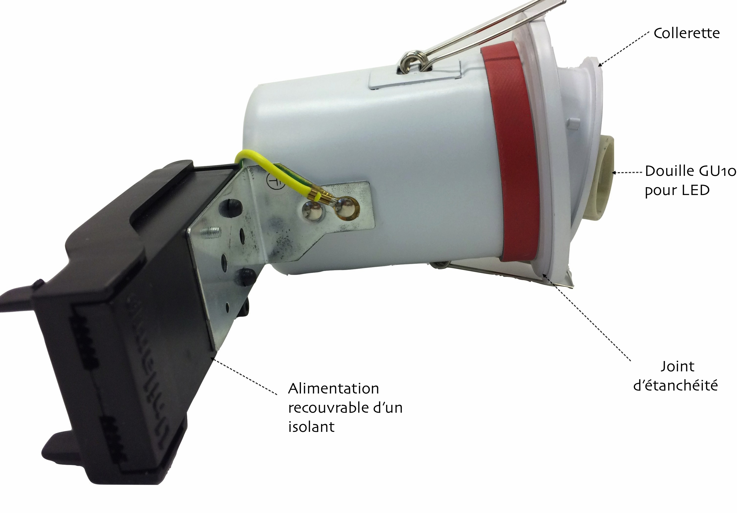 - Une alimentation qui peut directement être recouverte par de l'isolant pour éviter les ponts thermiques (à confirmer suivant le modèle du spot).